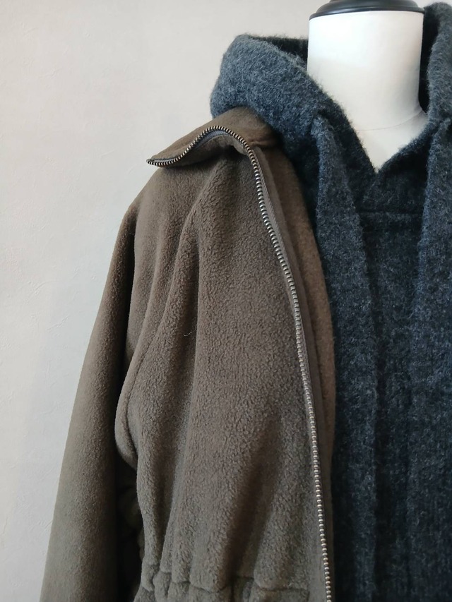 商品品番:450-85022 45.KHAKI リサイクルポリエステルを使用した国産のECOフリースを、 ワンピースに落とし込みました。 ワンピースとしては、もちろんファスナーが フロントに付いているので羽織りとしても◎ 逆開ファスナーを使用しているので、 インナーによって着こなしを楽しめます。 QUALITY ポリエステル 75% レーヨン 25% 【Size】 着丈 117cm 天巾 18.5cm 裾巾 161.4cm 袖丈 75.5cm 裄丈 84.1cm 袖巾 58.9cm 袖口 20cm ※上記の表記は平置きサイズになります。 多少、実際とは異なる場合がございます。ご了承願います。 ※商品購入後の返品、交換は致しません。サイズなどご確認の上、お買い求め下さい。 ※《※※ご購入前にご覧下さい※※》をご確認の上、お買い求めください。 ※撮影環境により、実際のカラーと多少異なる場合がございます。また、携帯やスーマートフォン、パソコンなどの画面上と実物では多少色が異なって見える場合がございます。ご了承下さいませ。 ※画像の商品はサンプルのため、実際の商品と若干仕様が異なる場合もございます。