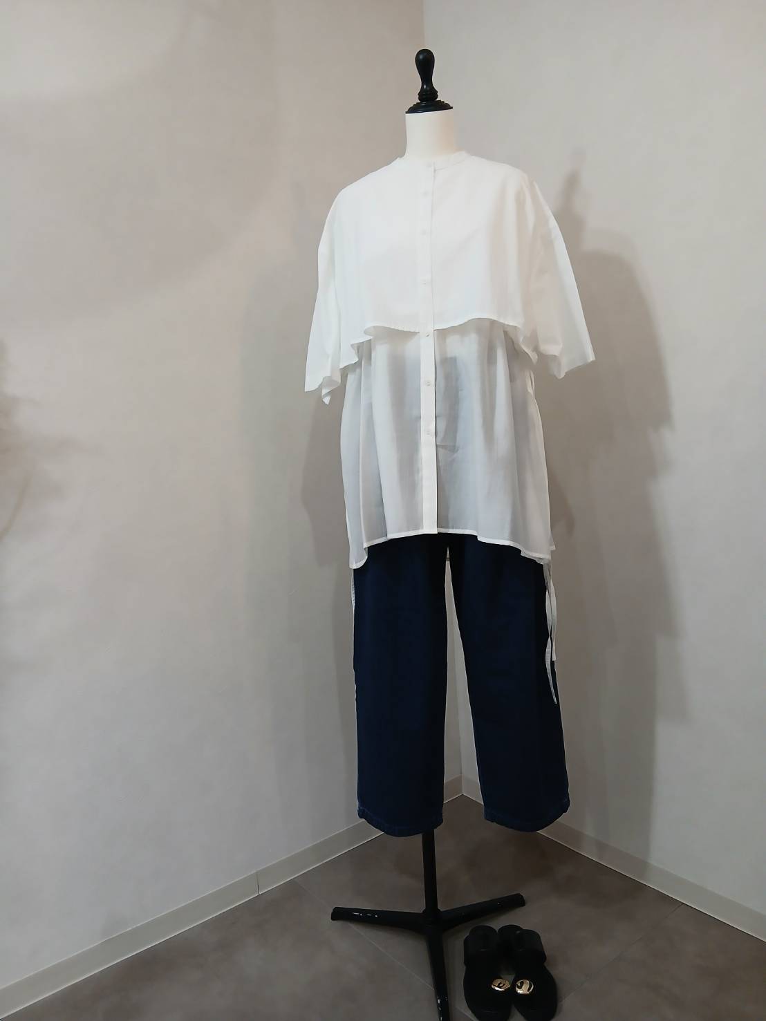 【CYAN TOKYO】シアーコンビブラウジングシャツ