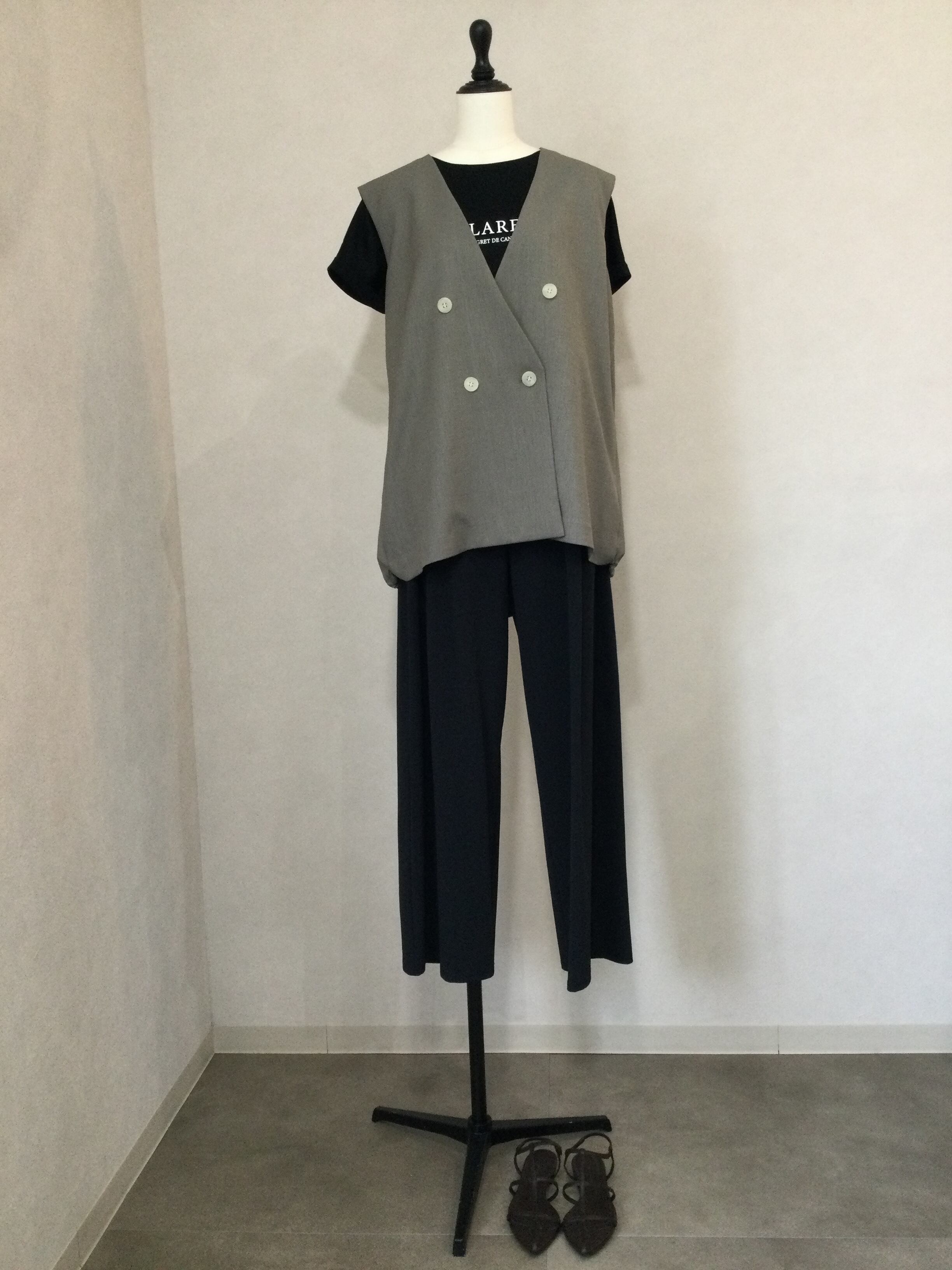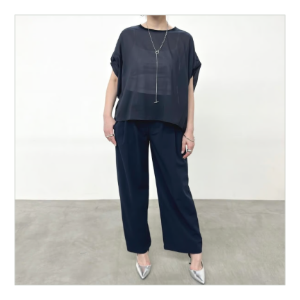 ・脇寄りのタックで腰回りにゆとりを持たせ