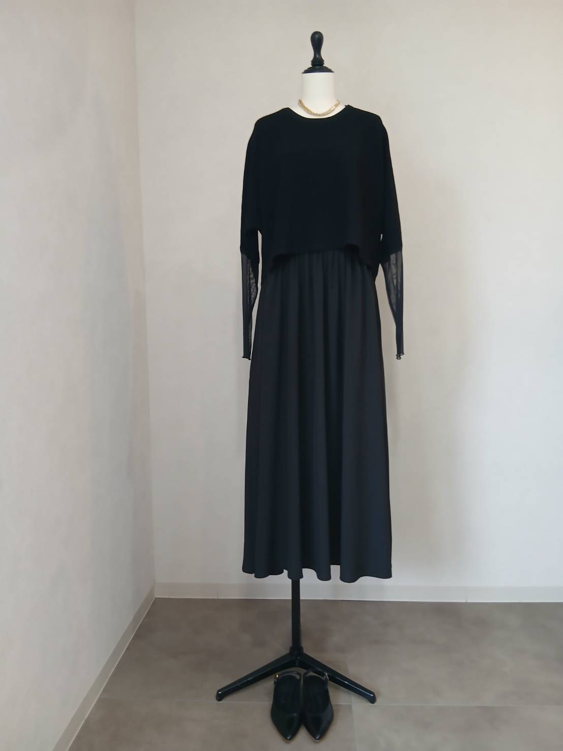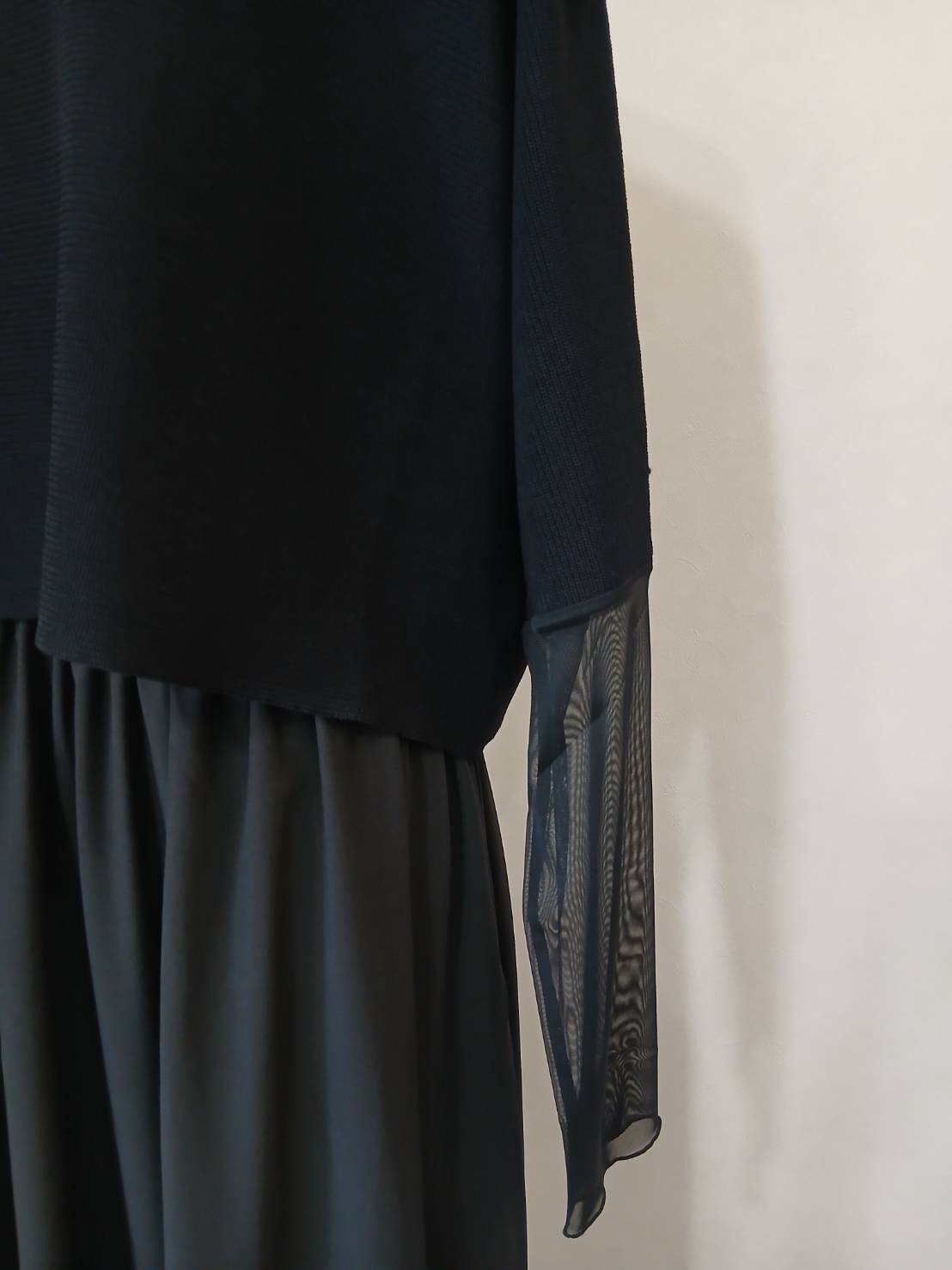 袖口にストレッチチュールとドッキングしたニットプルオーバーです。