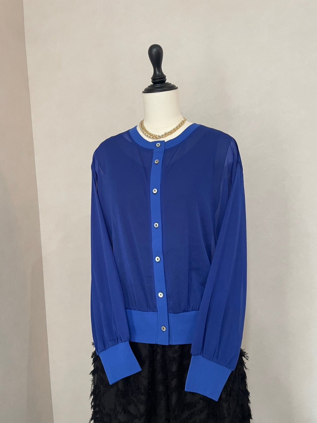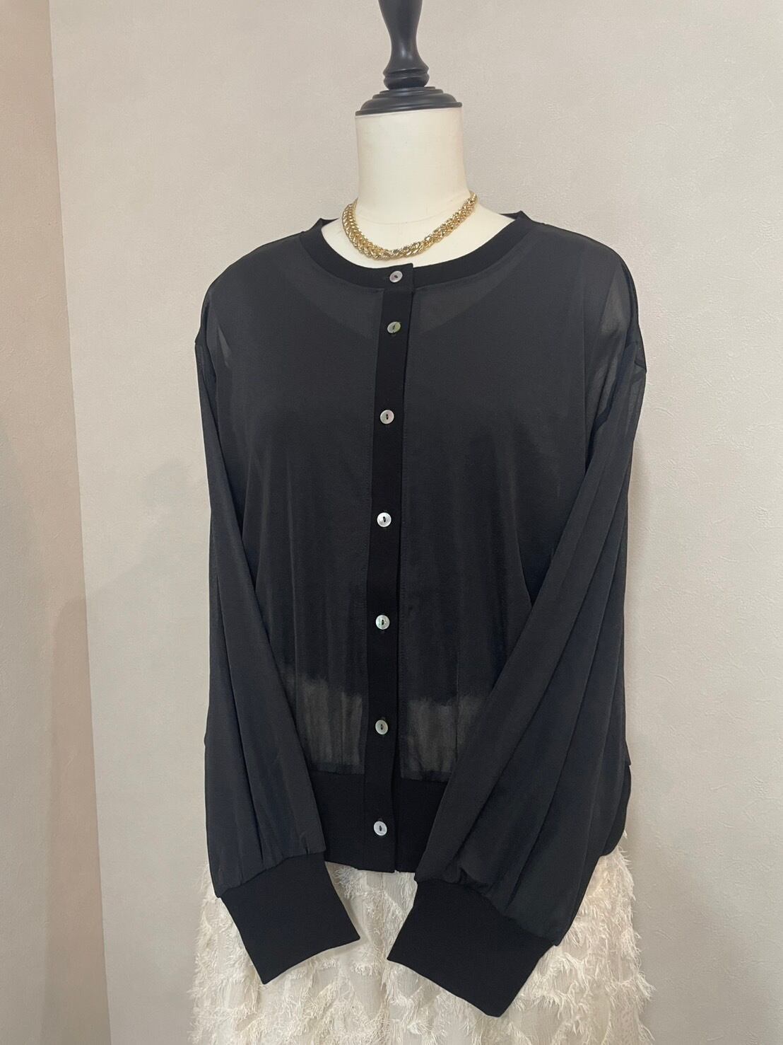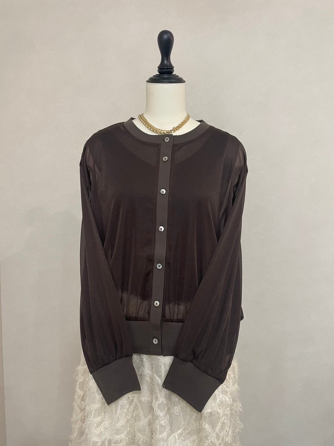 ・トリコットシフォンクルーネックシアーカーディガン