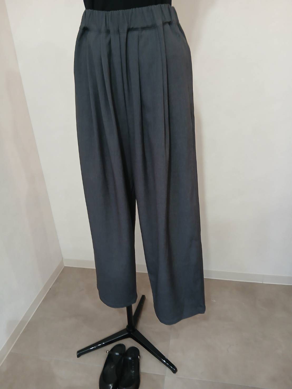 程よくゆとりのあるワイドシルエットですが、落ち感のある素材ですっきりとした美脚効果のある