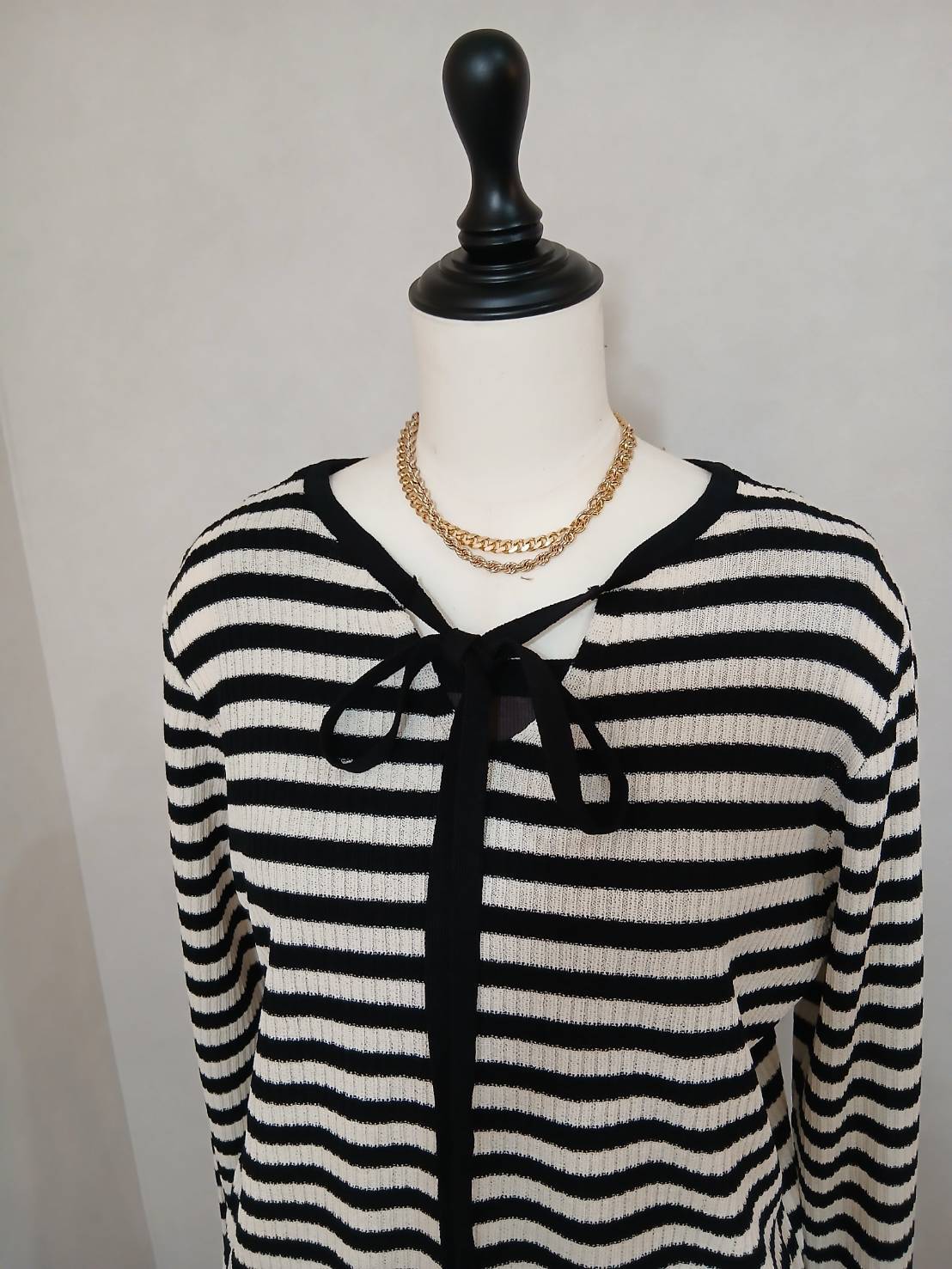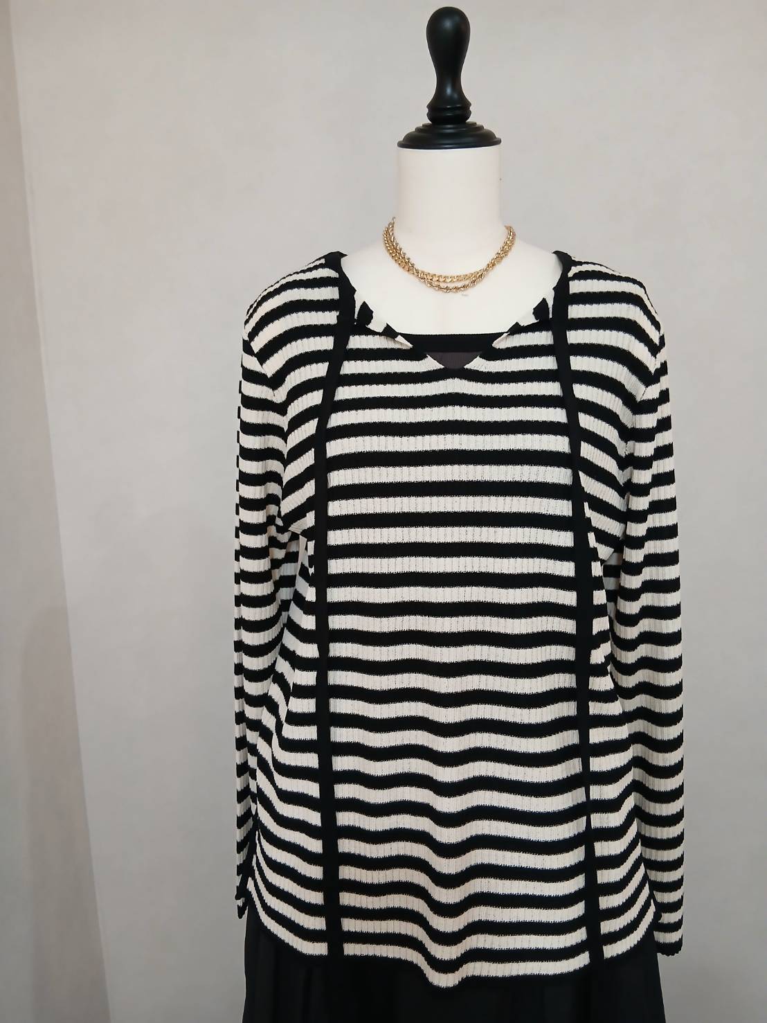 共糸のチョーカー使いが今年らしいニットプルオーバーです。
