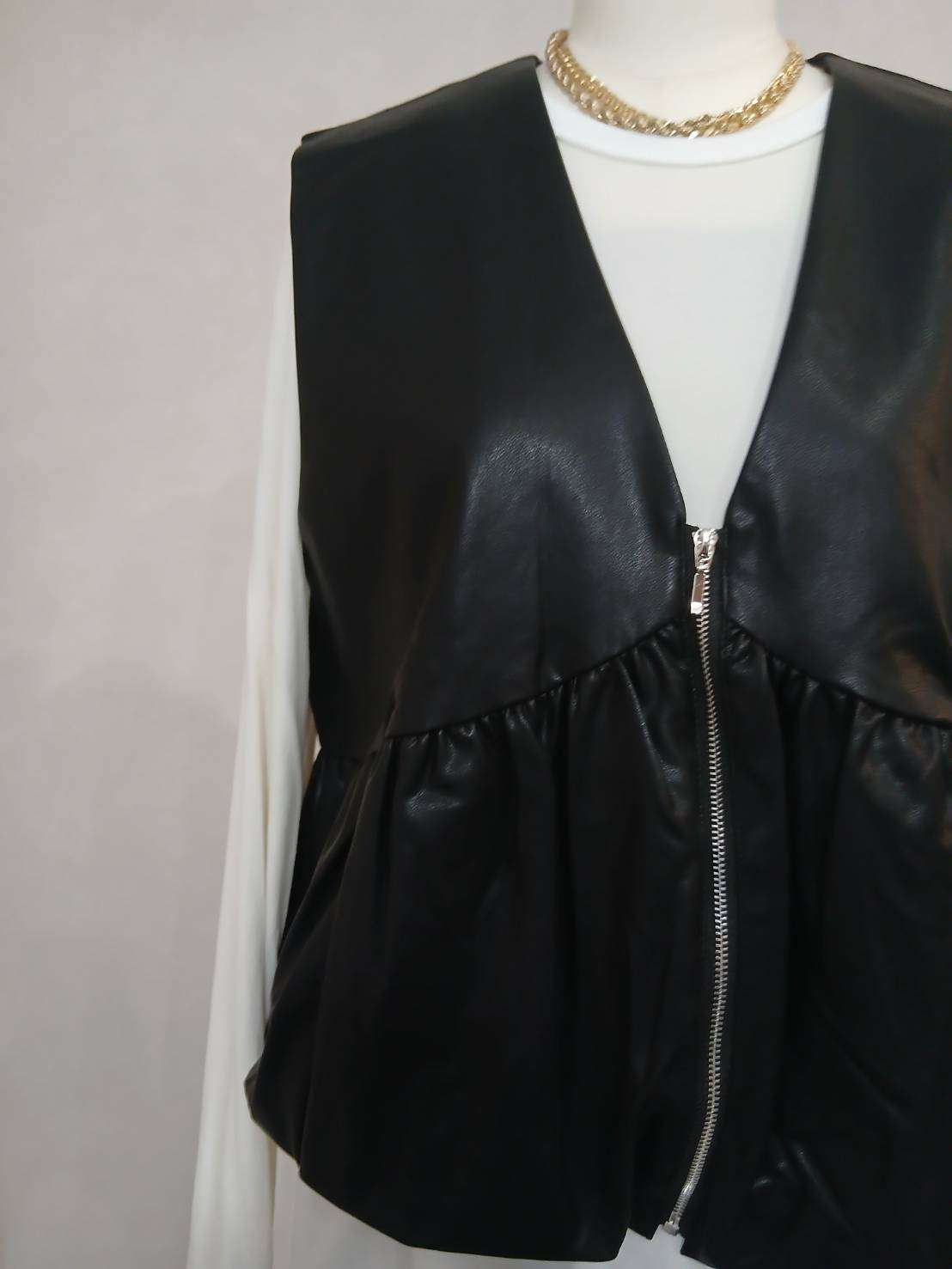 ヴィーガンレザーバルーンギャザーベスト