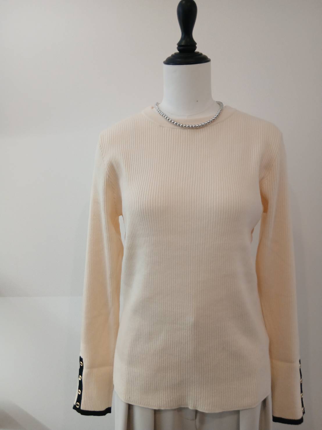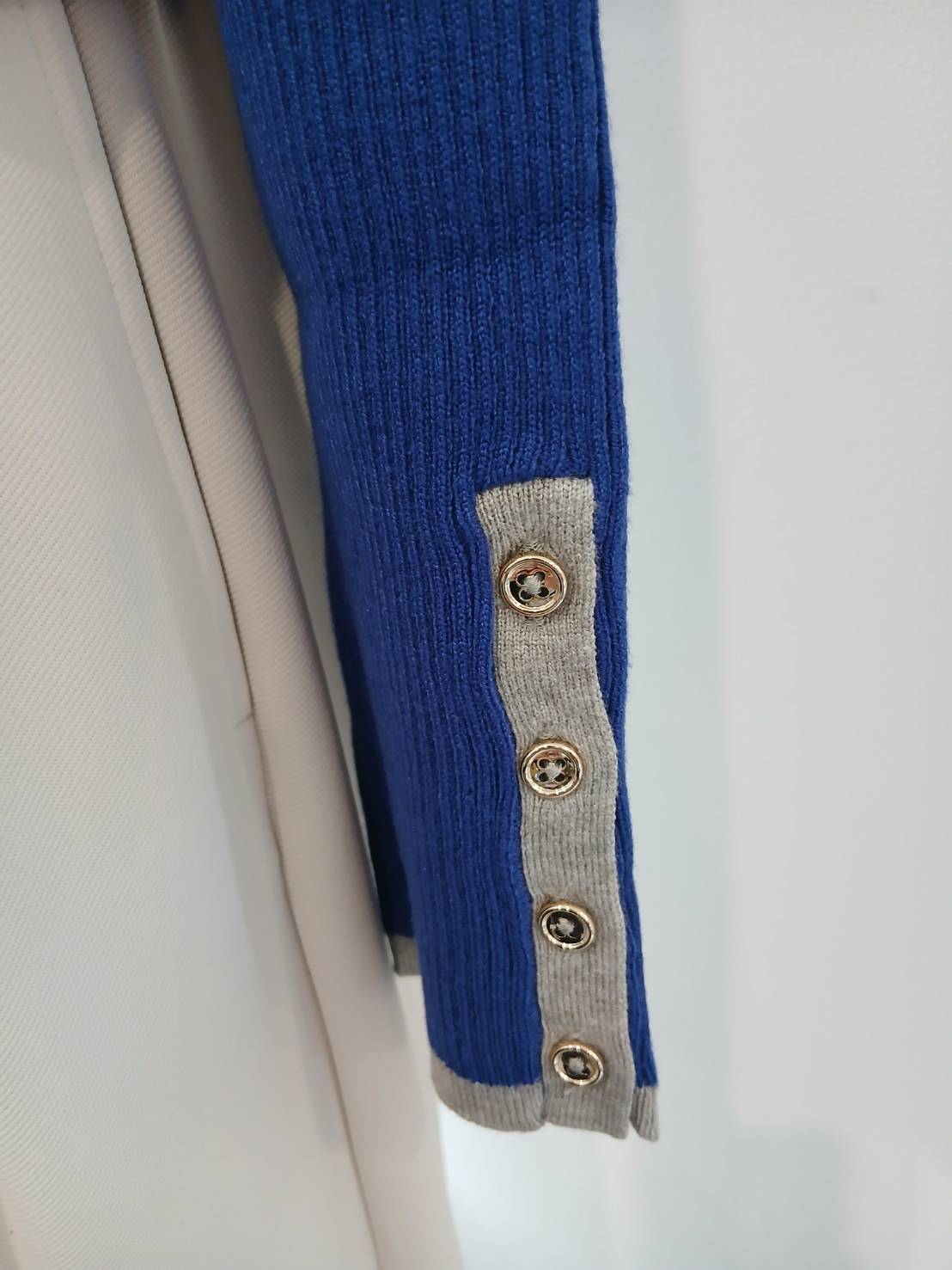 ・袖口のアクセントカラーと華奢な金釦がポイント