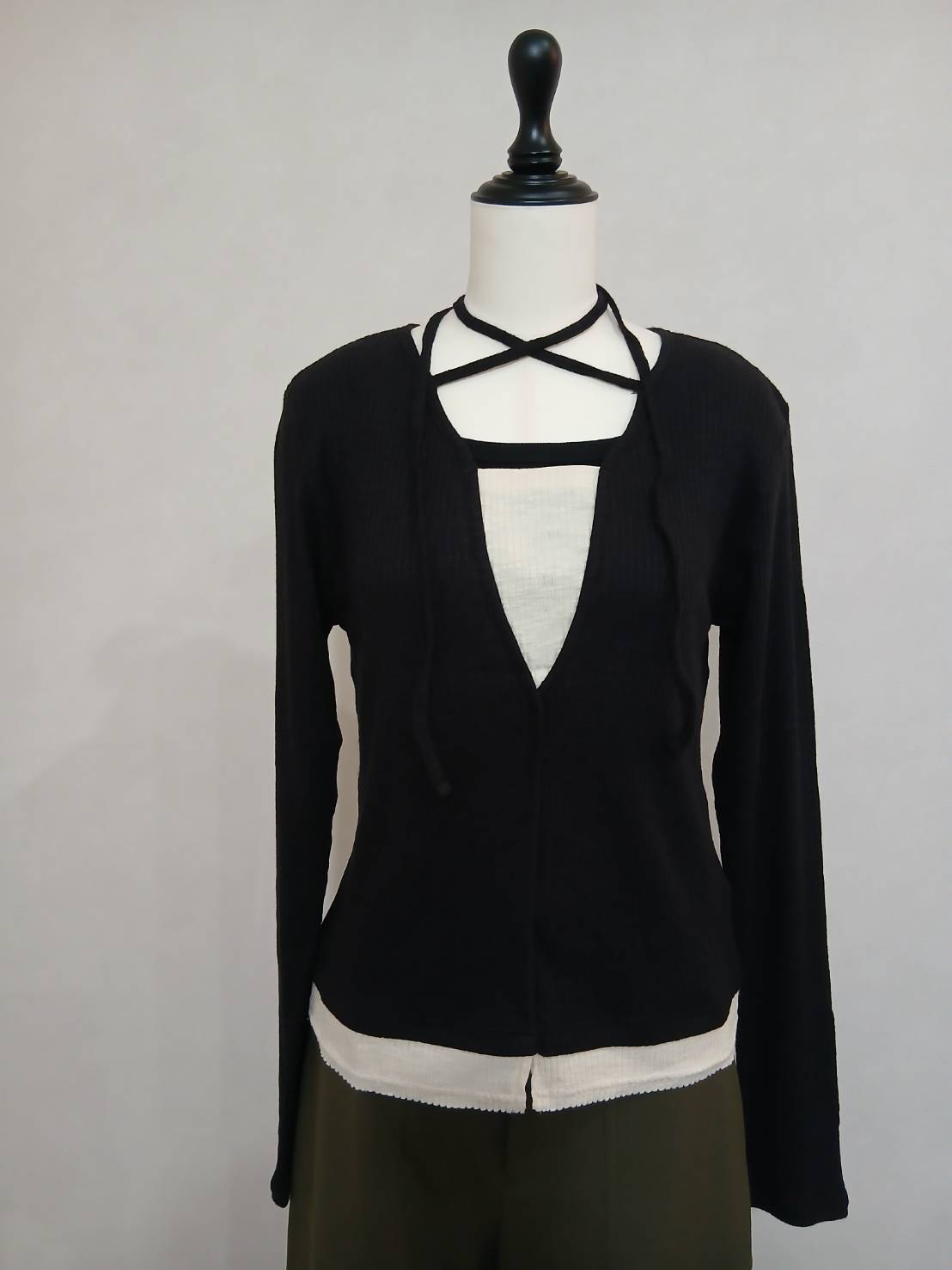 レイヤードライクなデザインと配色がポイントのプルオーバー。