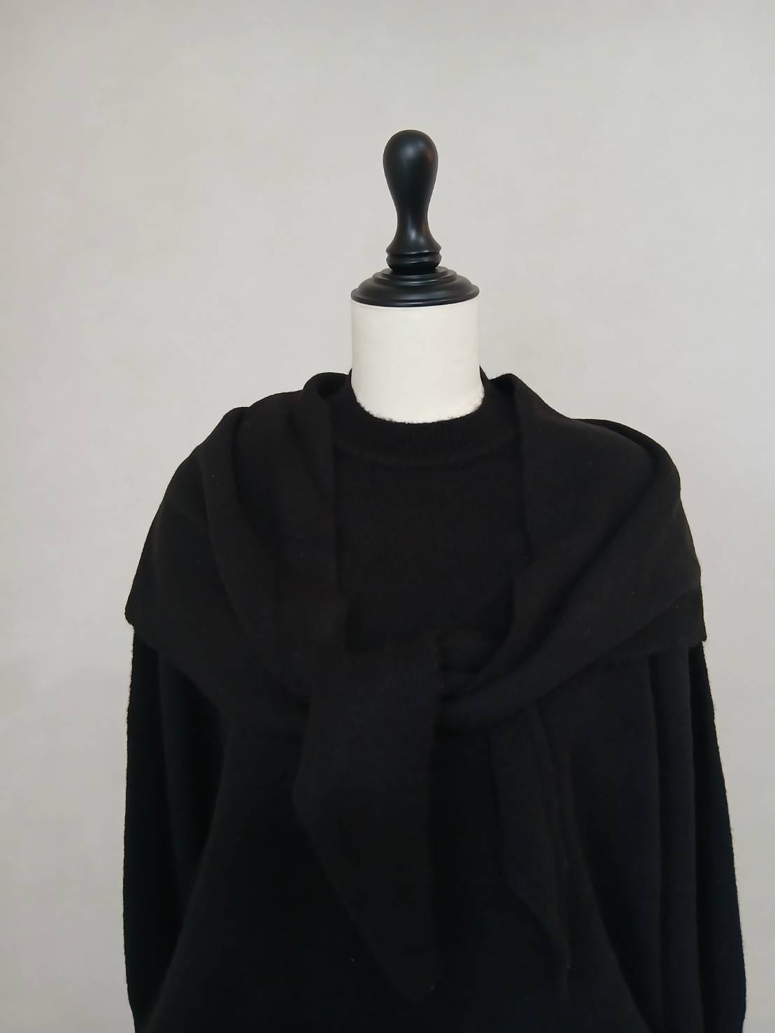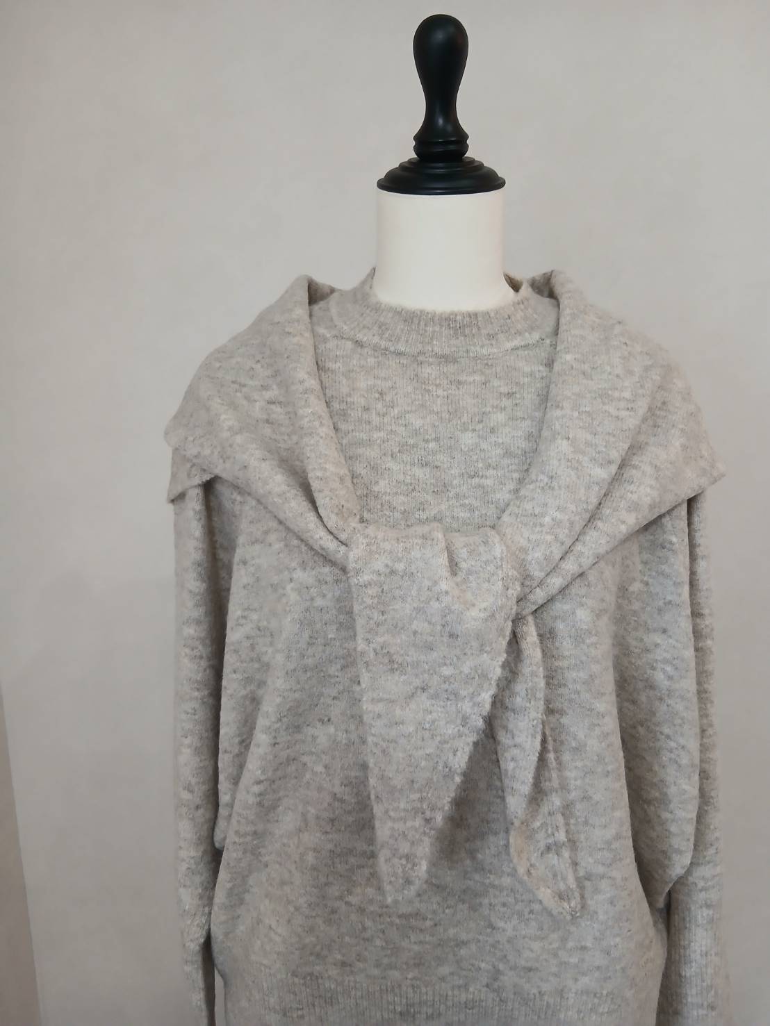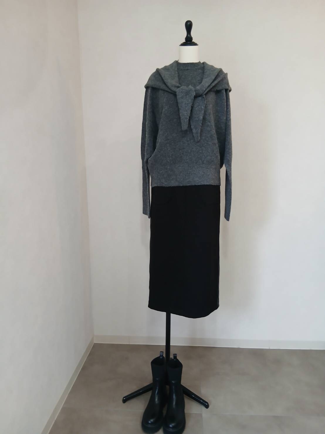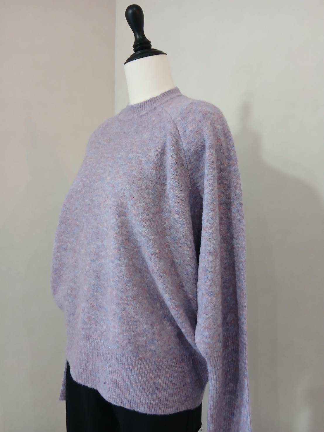 ラグラン袖のトップスはコンパクトなシルエットで、