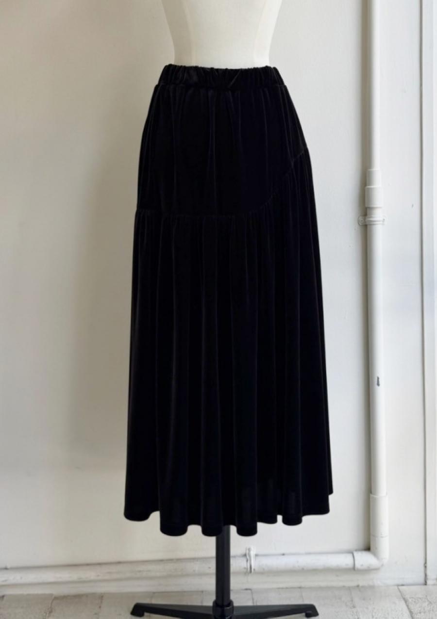 高級感のある光沢のベロア素材を使用したアシンメトリーな