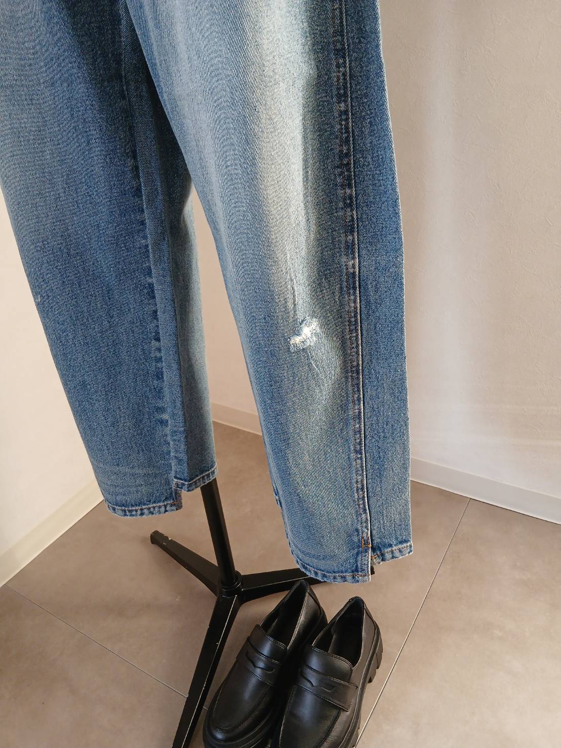 所々に施したさりげないダメージ加工もポイントです。