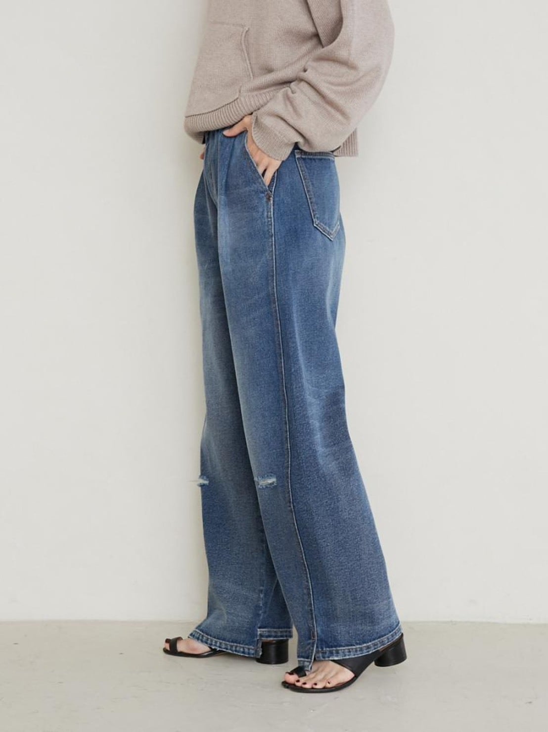 拘りのつまったデニムパンツは、シンプルなニットやシャツに