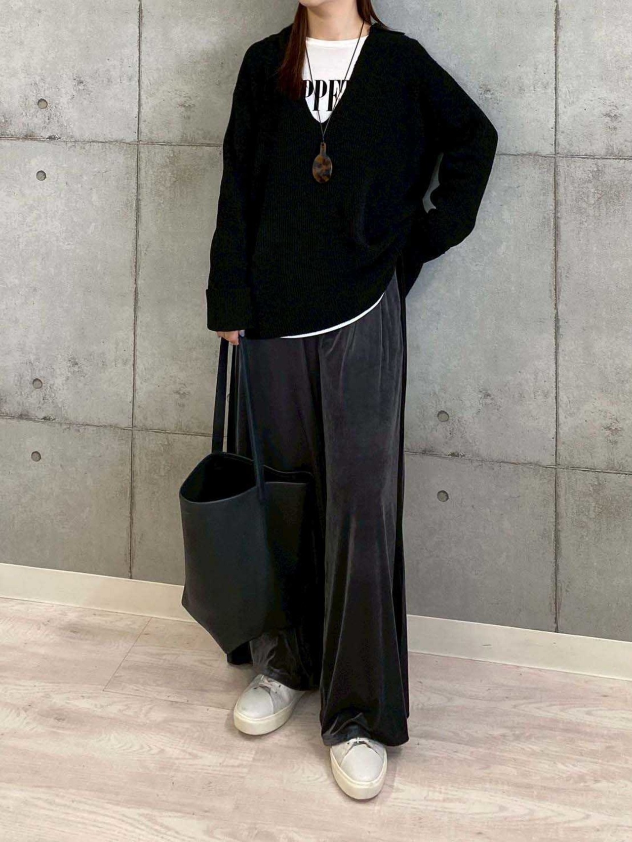 毛足が短くマットな質感のベルベット素材を使用したワイドパンツ。大人っぽく落ち着いた印象