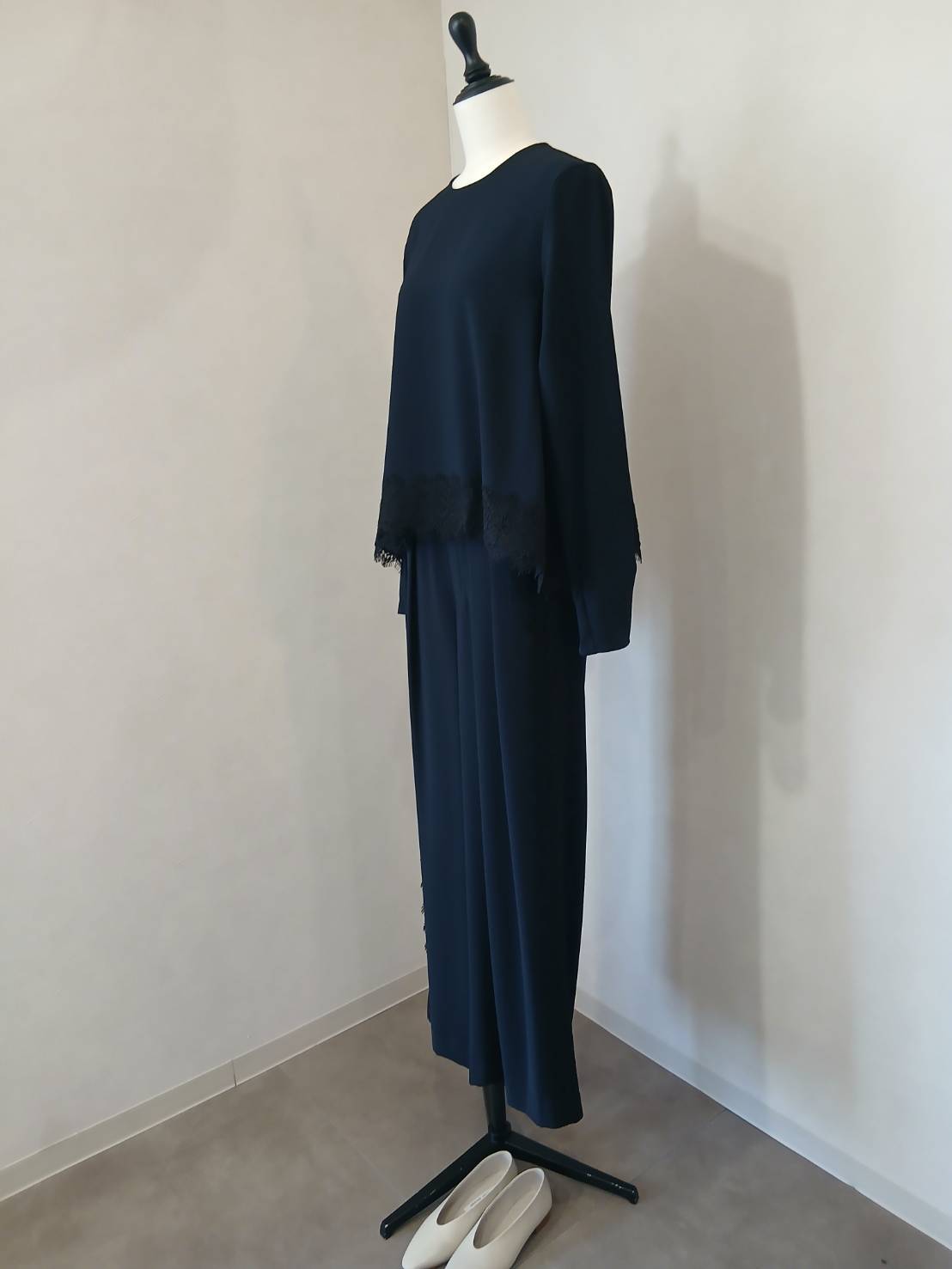 一枚で着るだけで華やかさがあり、同素材のパンツを