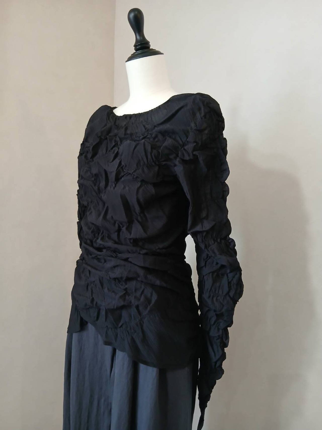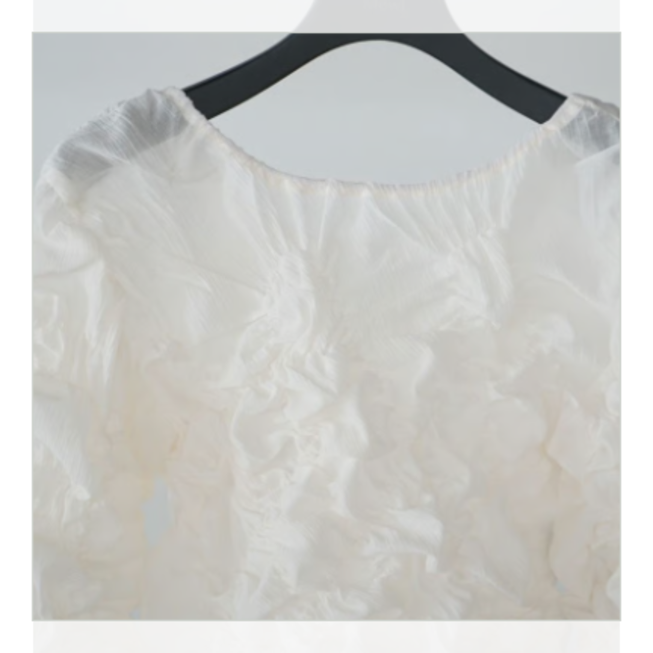 「くしゅっとした立体感が可愛い、表情豊かなシャーリングトップス。」