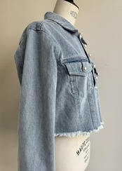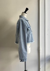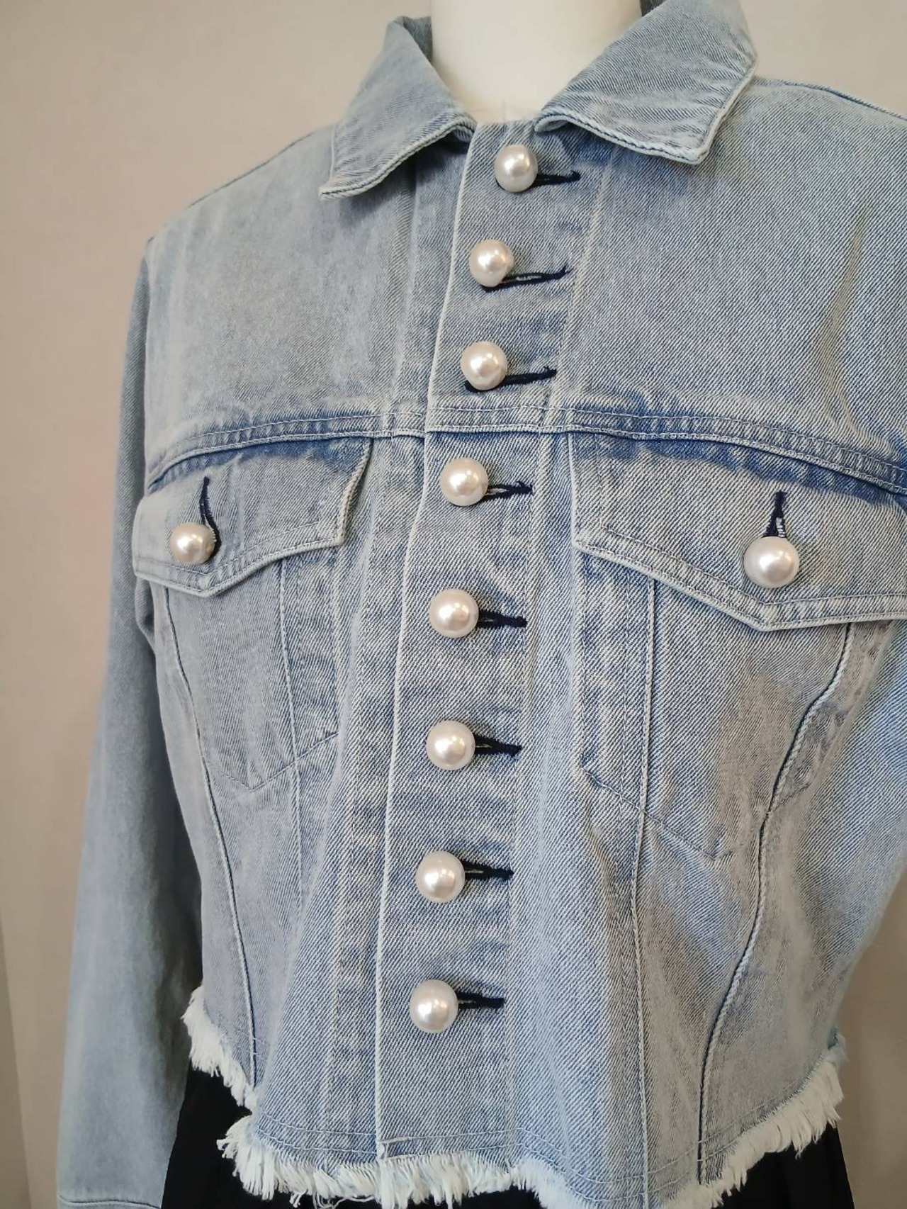 BIGパールを贅沢に施したショート丈のデニムジャケット。