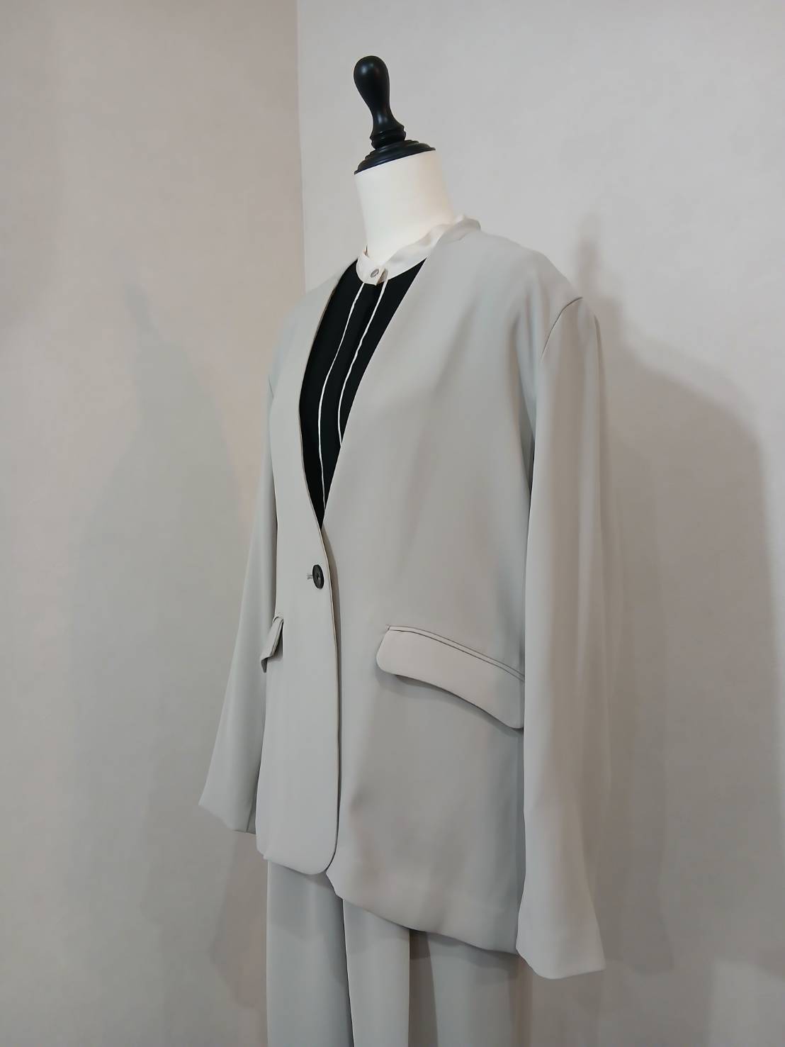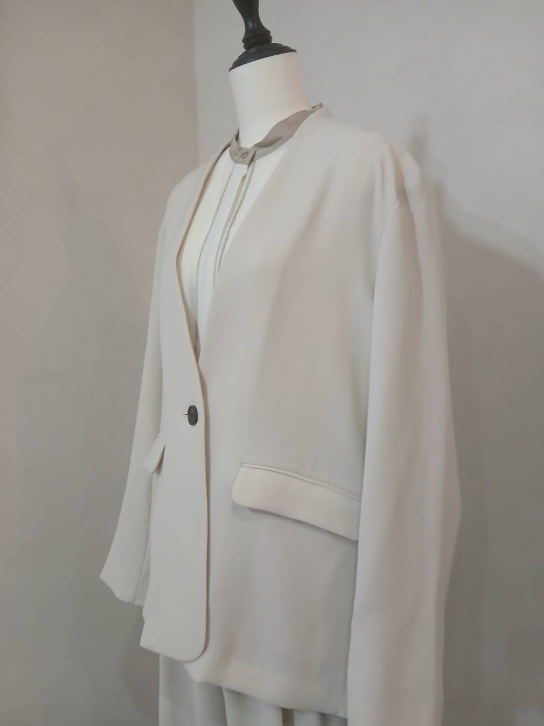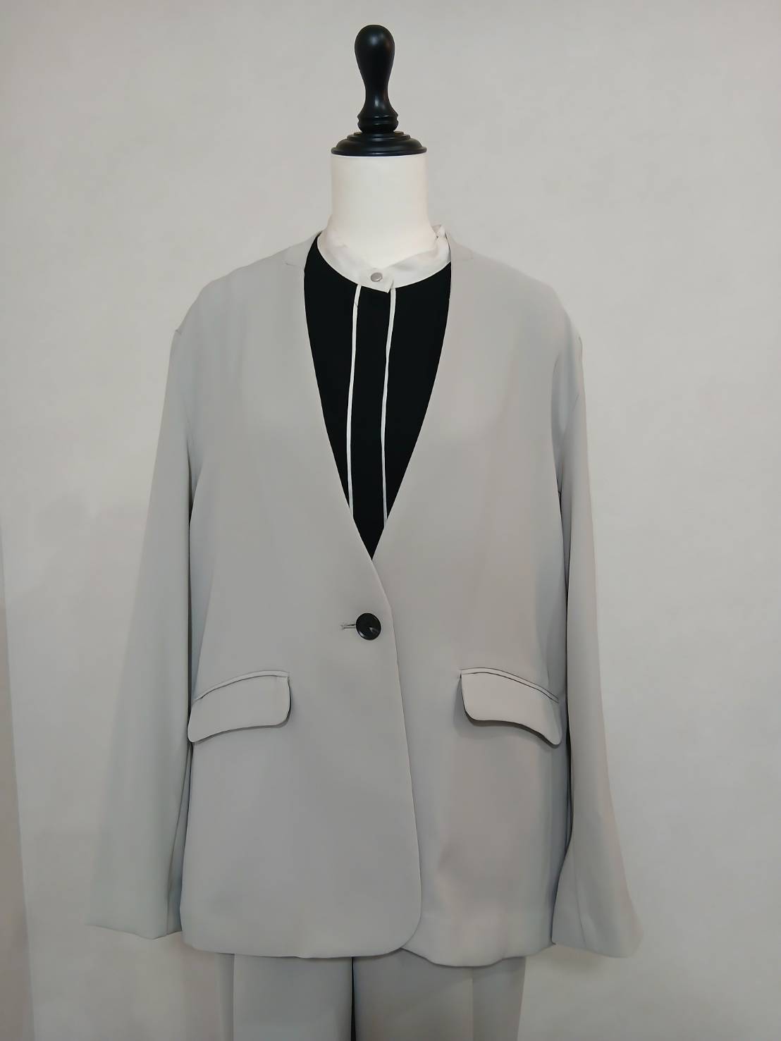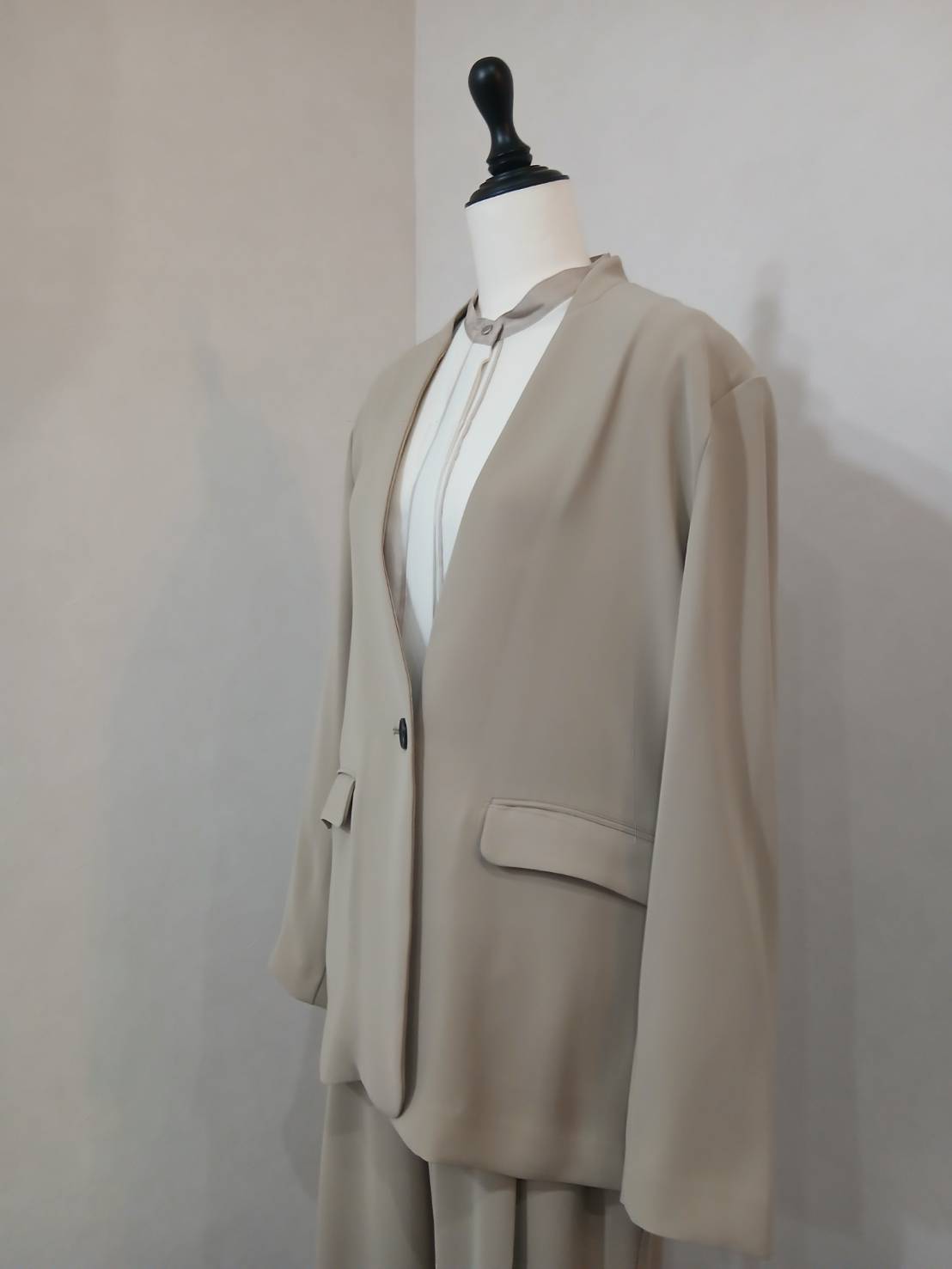 ・キチンと見える1つ釦のペーシックデザインながら。少しだけサイズにゆとりを