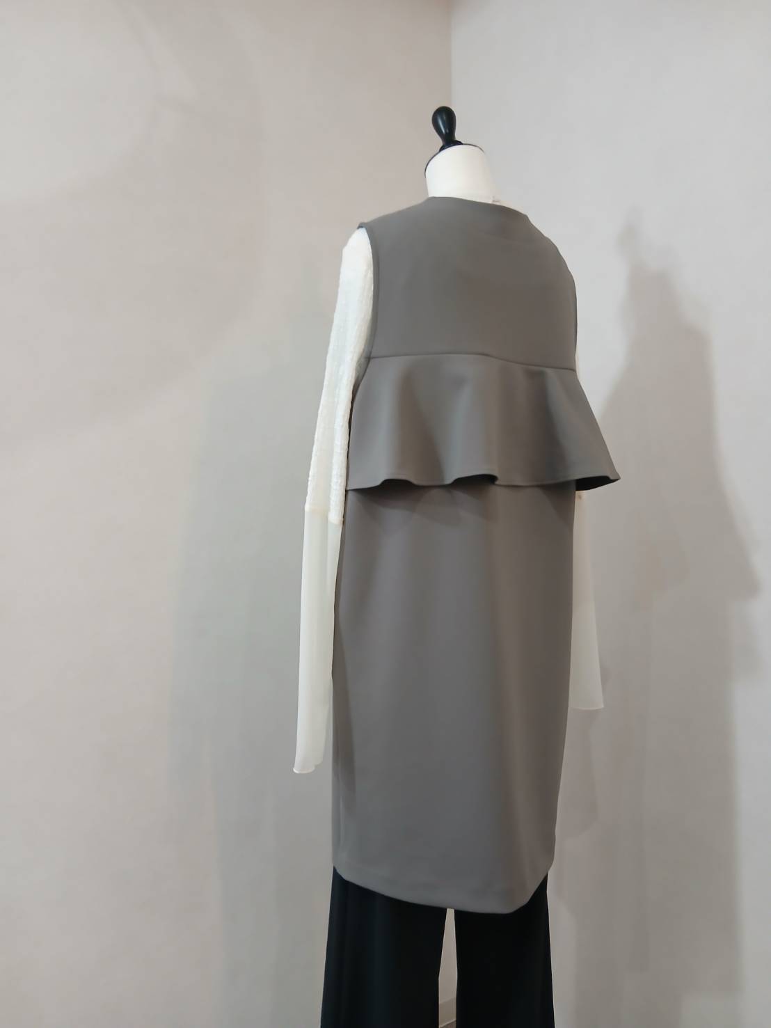 ・バックラッフルがポイントのロングベスト