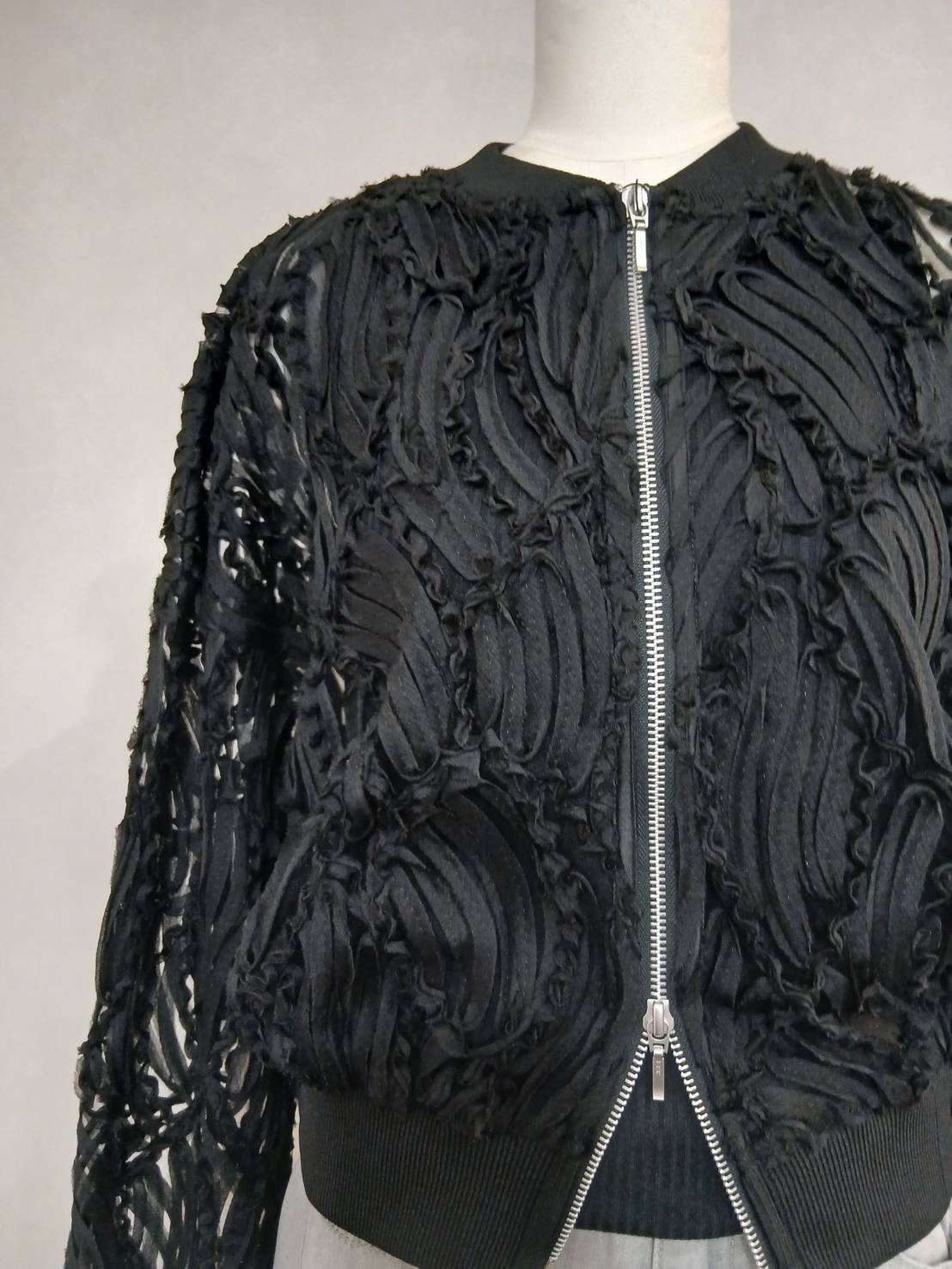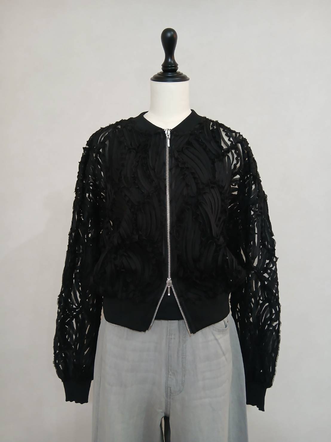 立体感のあるチュール生地を使用した、シアー感がかわいいブルゾン。