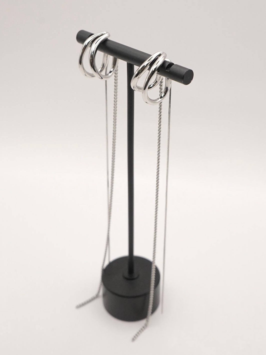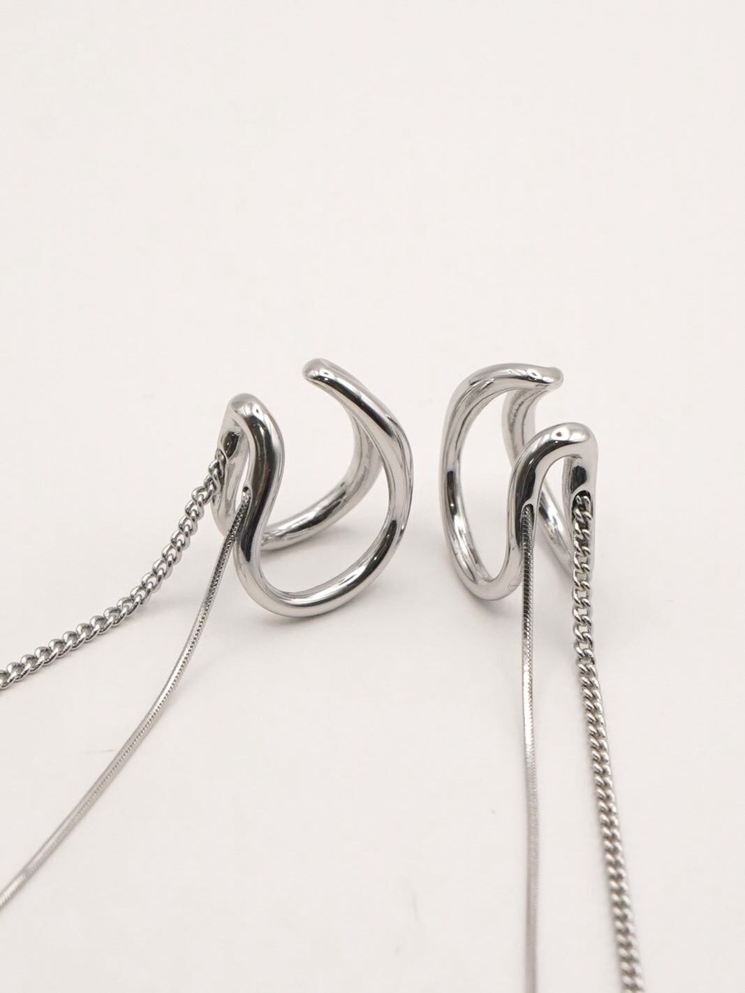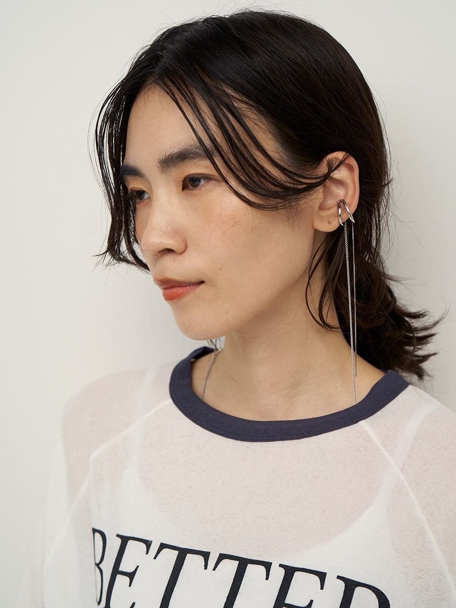 ダブルラインのイヤカフに、きらっと揺れる2種類のロングチェーンが
