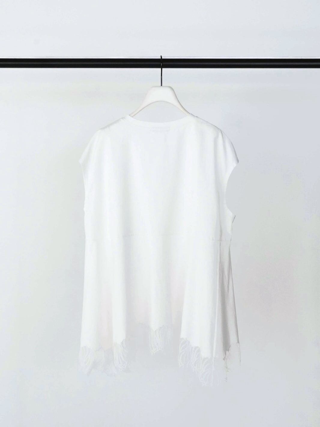 肌触りの良いカットソー素材に、レースを刺繍して組み合わせることで