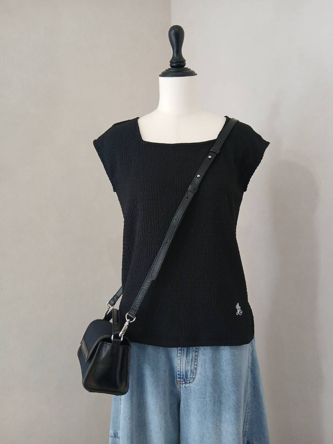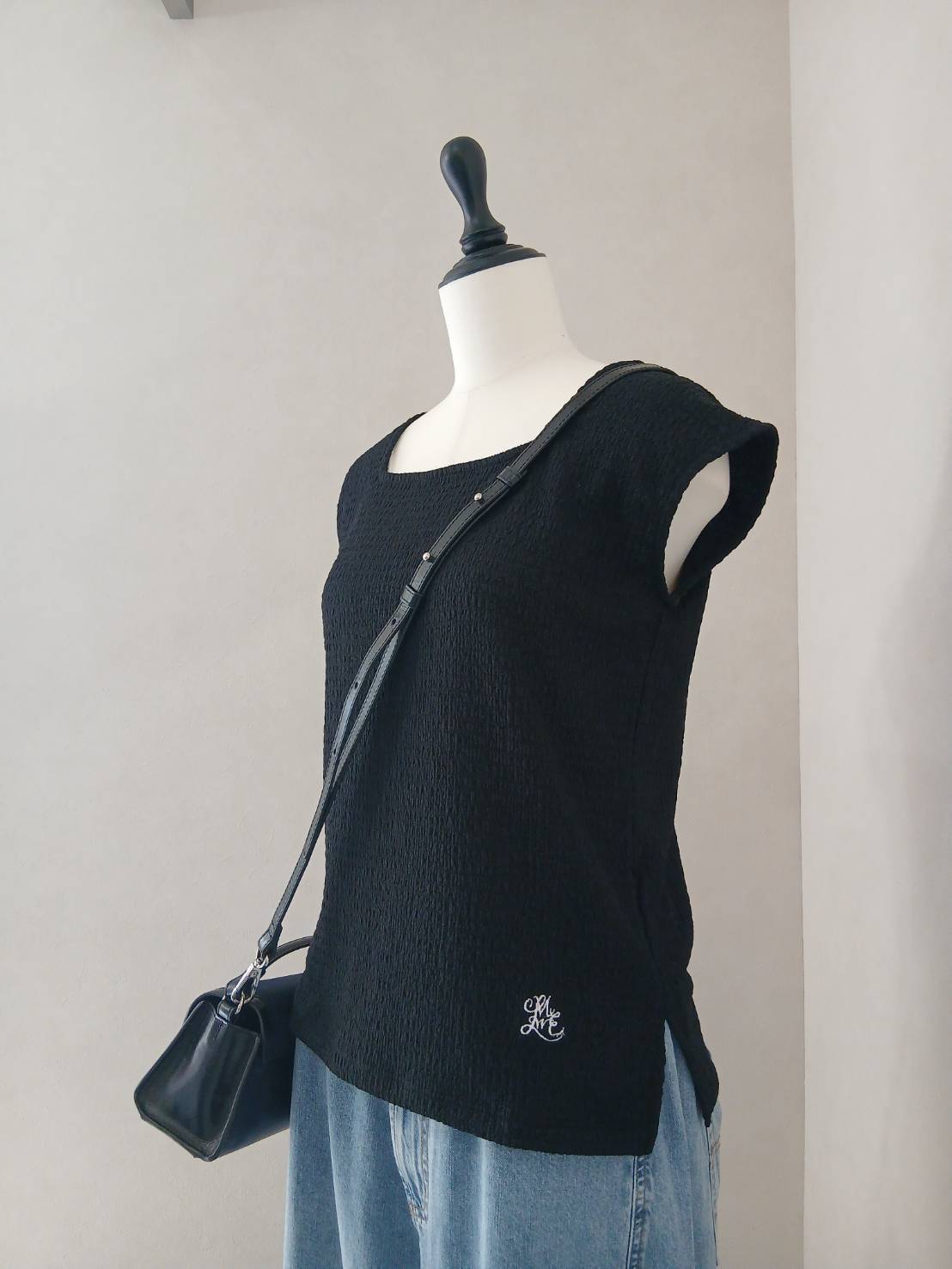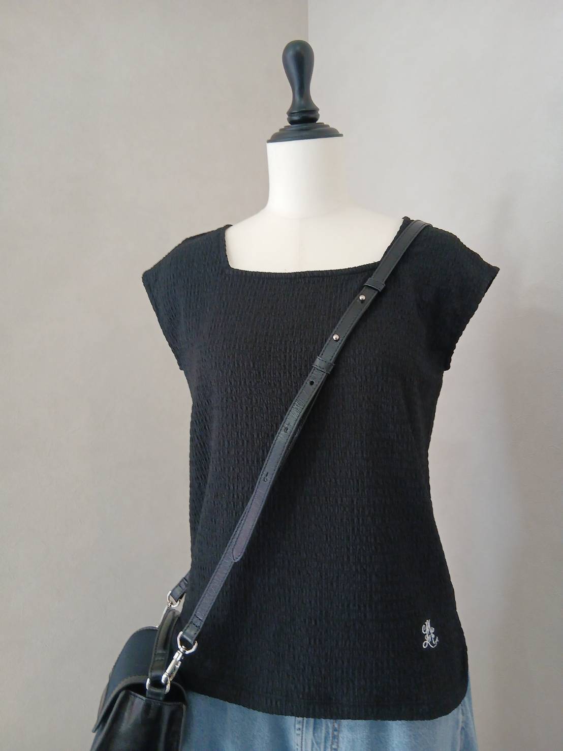さりげないミュール刺繍がアクセントとなり、大人の装いに遊び心をプラス。