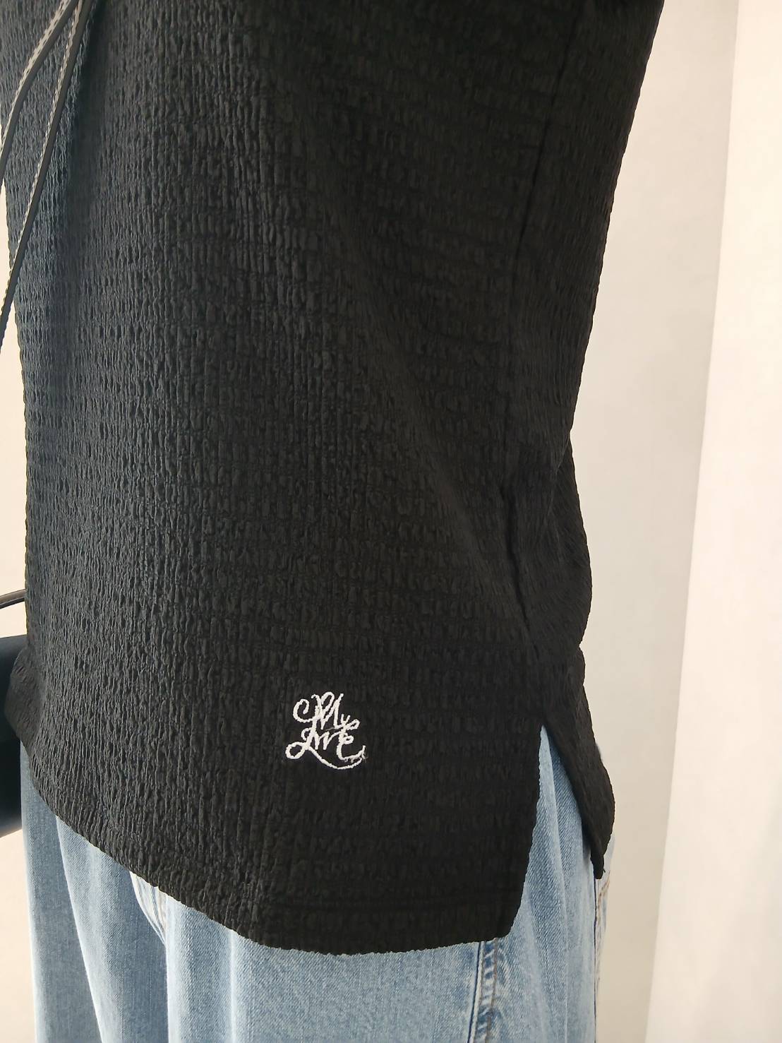 立体感のある膨れジャカード素材を使用した、