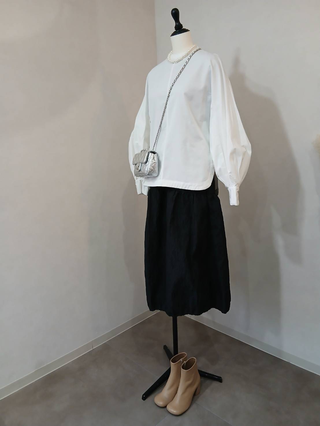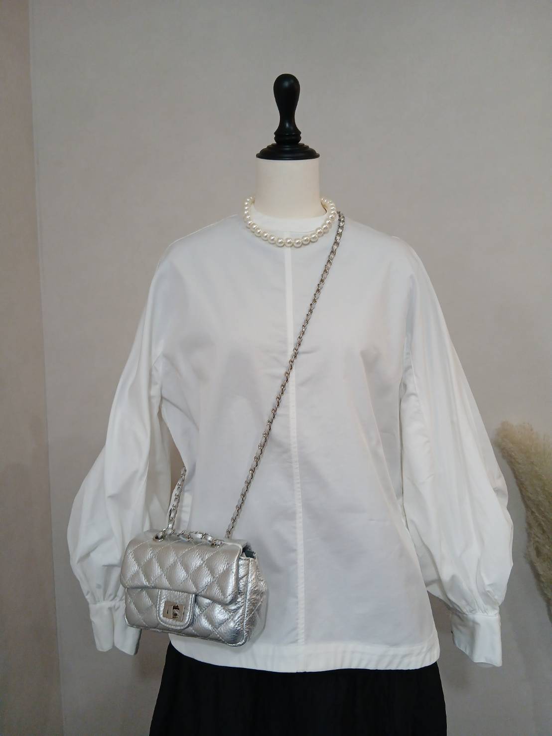 ドラムスリーブパール釦ブラウス