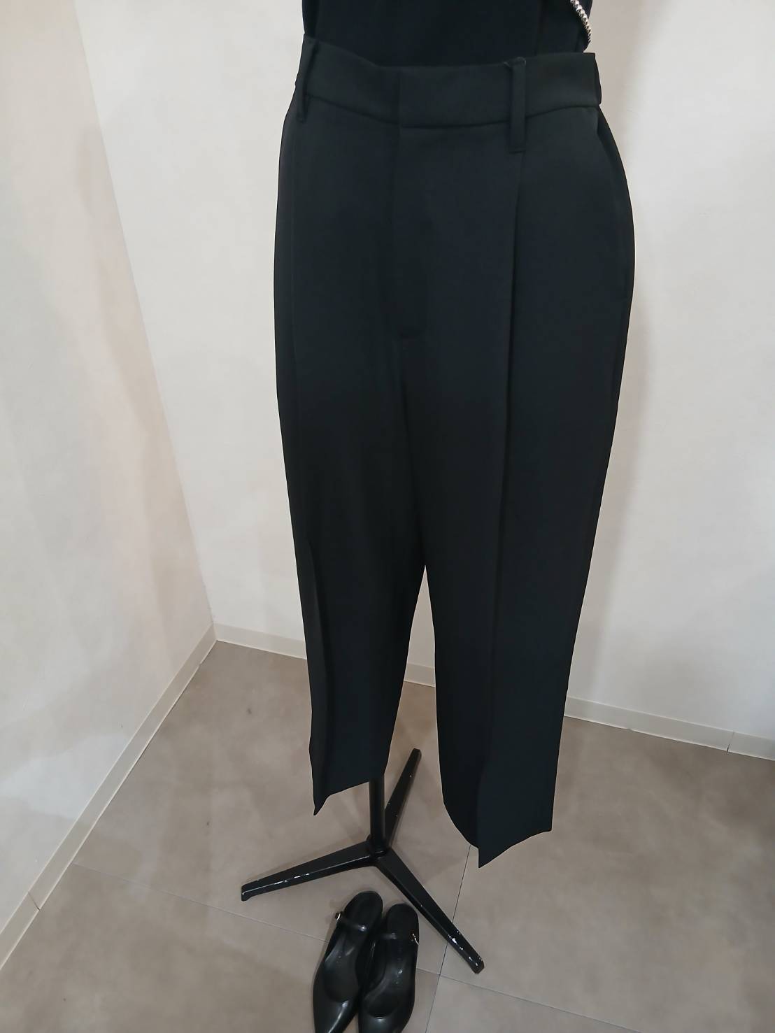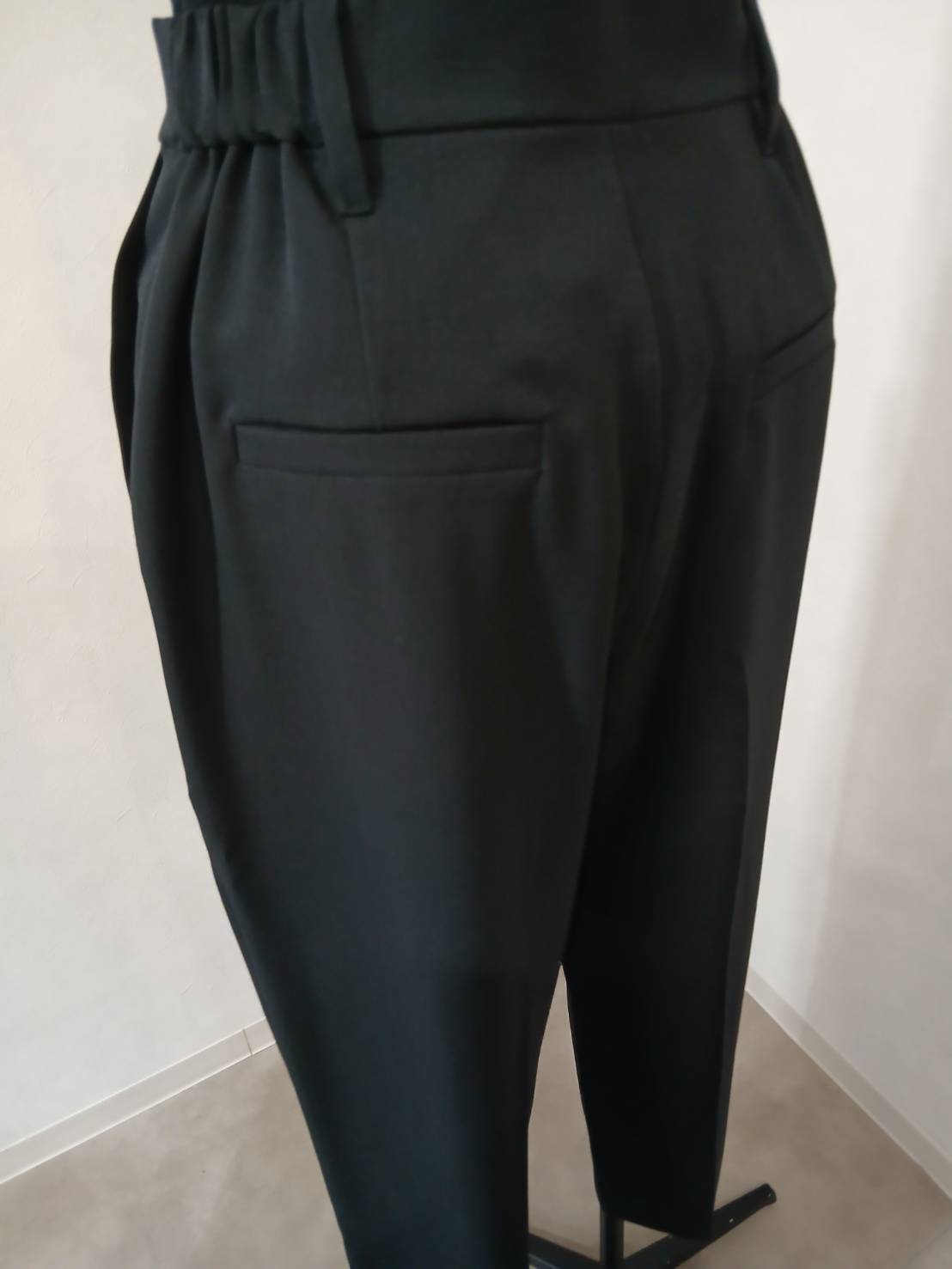 ワンタックスラックスまるでスーツ地のような見え方でジャージィのように伸縮し、シワにもなりにくいので、ちんなのに常にきちんと見える素材を使用。撚糸による清涼