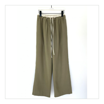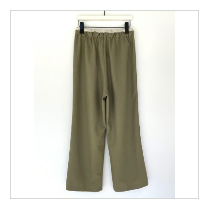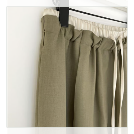 ウエスト周りをサテン地のドッキングさせたイージーなパンツ