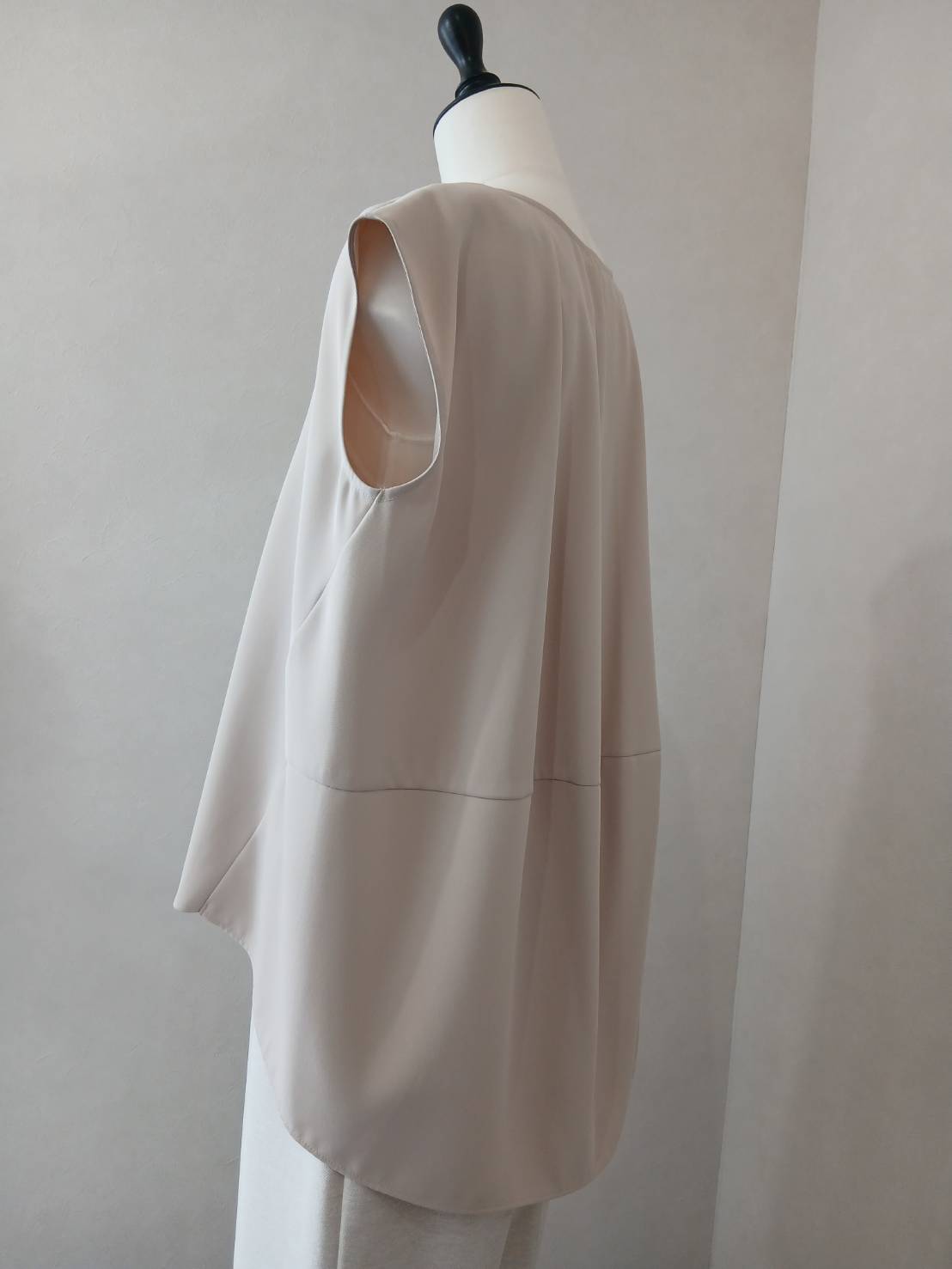 アシンメトリーなデザインが特徴のフレンチスリーブブラウスです。