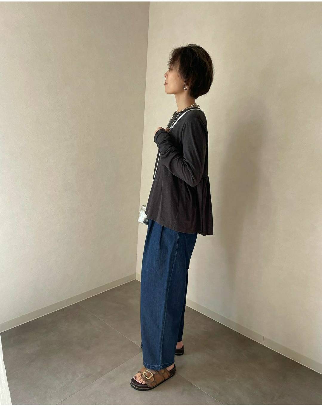 シンプルなシルエットにバックのギャザーがポイントです