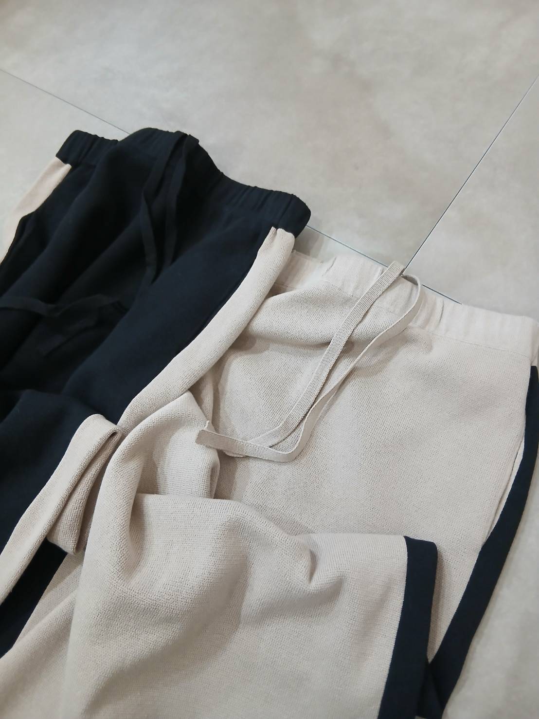 配色のサイドラインがトレンド感のあるニットタイトスカート。