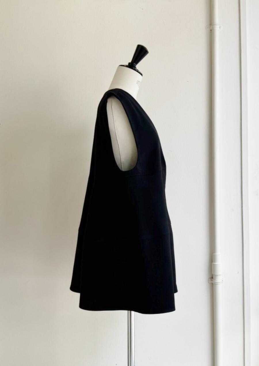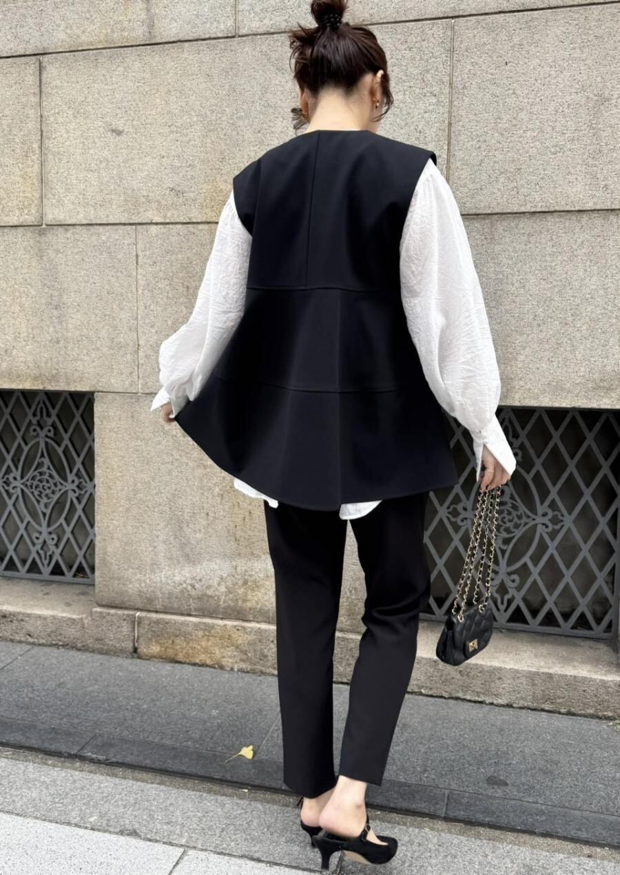 ボンディング生地を使用した立体感のあるペプラムベスト。