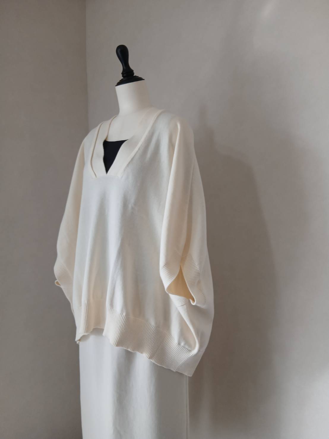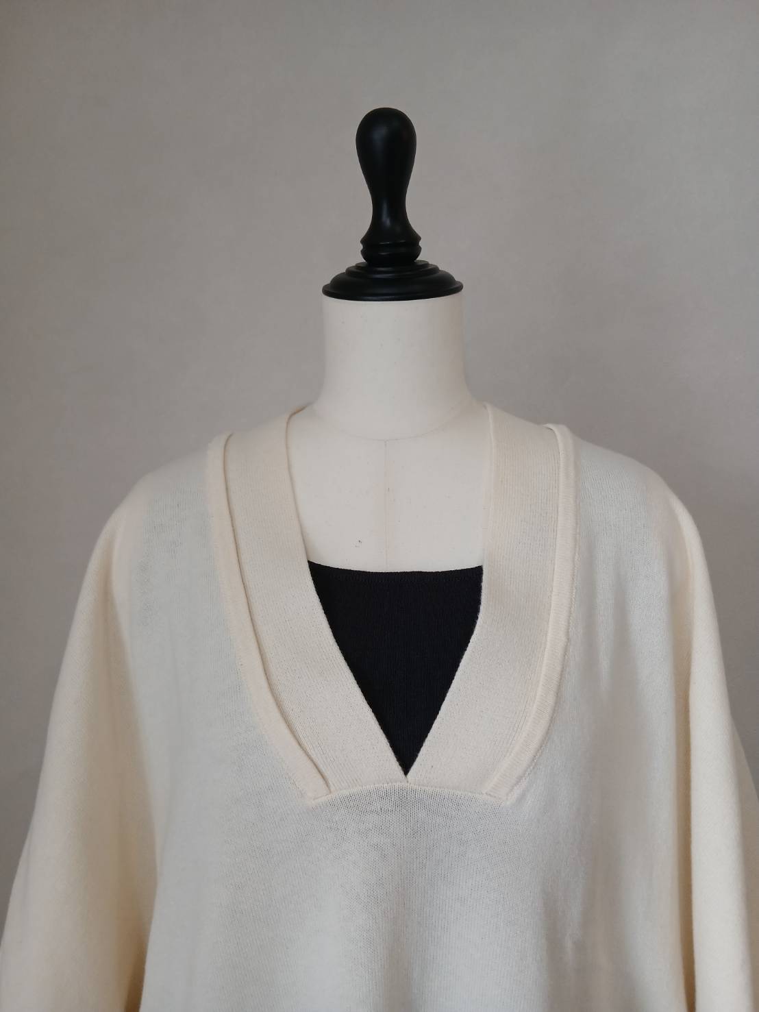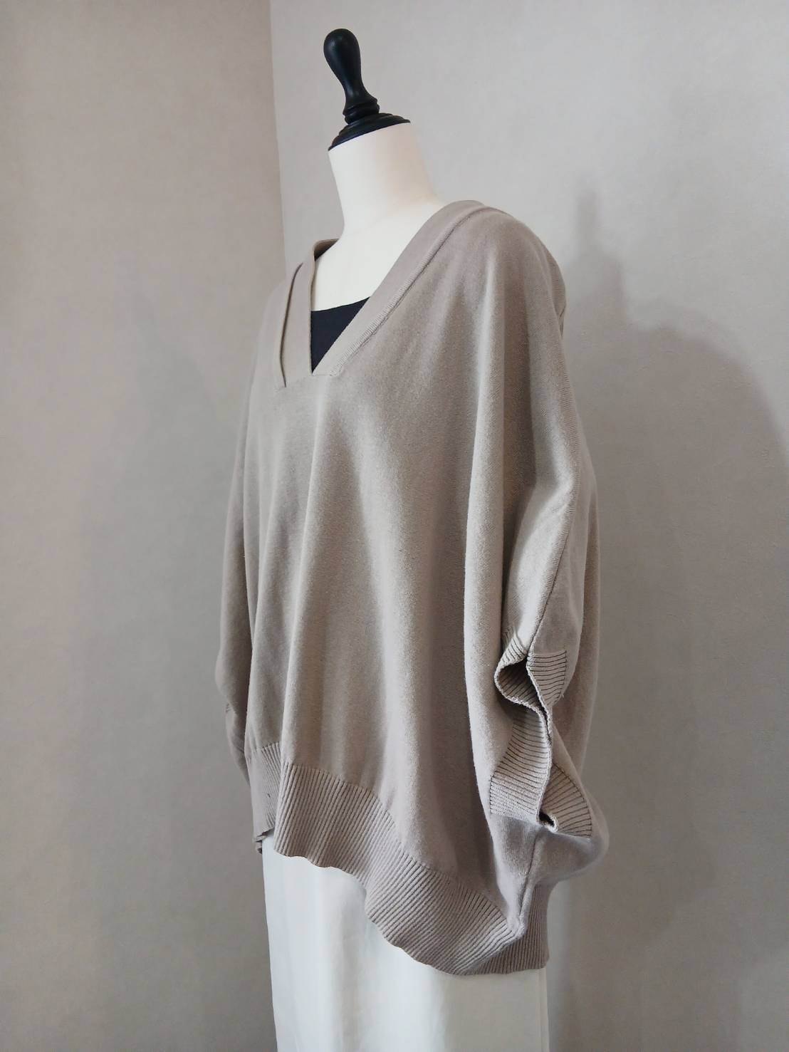 肩が綺麗に落ちるようにシルエットにこだわったポンチョ型ニット。